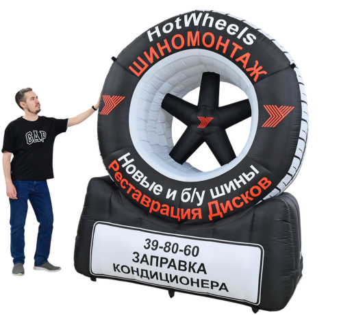 Надувные колёса от «АэроМир» — это крупноформатная рекламная конструкция, которая цепляет взгляд и помогает бренду выделиться на фоне любой площадки. Формат отлично работает для шиномонтажа, автосервиса, магазинов дисков и шин, автосалонов, промо-зон и сезонных акций: один объект — и у вас уже есть заметная точка продаж и фотоориентир для клиентов.