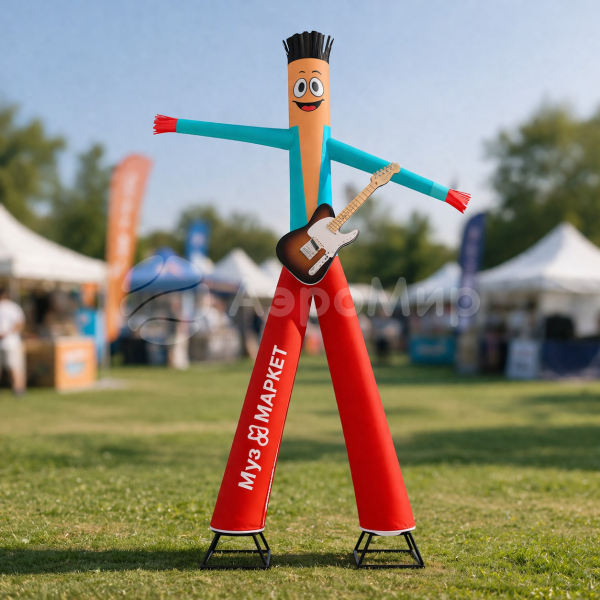 Аэромен с нанесением доп. декора — это возможность оснастить аэромена дополнительными атрибутами. Например, музыкальными и строительными инструментами, дополнить изделие автозапчастями или придать фигуре другую тематику. Новое решение сделает вашего аэромена более оригинальным и интересным, способным усилить эффект рекламы, заявив о вашем бизнесе необычным, но ярким способом. В производстве изделия используется надежный материал с плотным плетением Дюспо 240DEN.