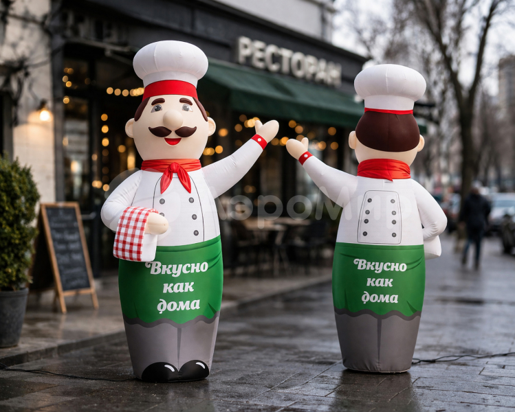 Повар зазывала — надувная фигура с круассаном, подносом или меню
