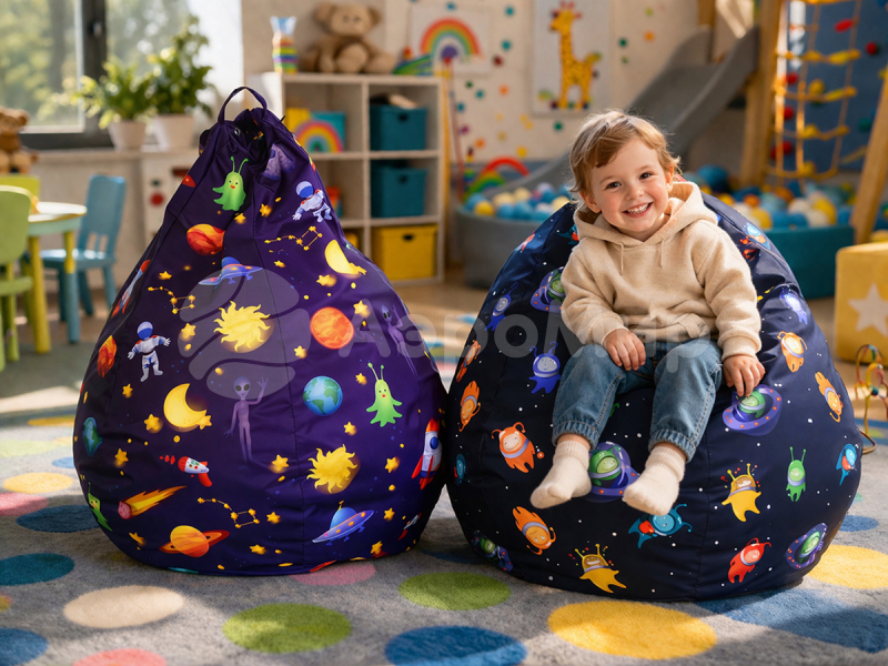 Кресло‑мешок — бескаркасная мягкая мебель, которая принимает форму тела человека. Представляет из себя прочный чехол, наполненный гранулами пенополистирола. Никаких жёстких углов и спинок — оно даёт ощущение полного расслабления. Кресло без твёрдых деталей и острых углов — идеально для интерактивных пространств и детских комнат.