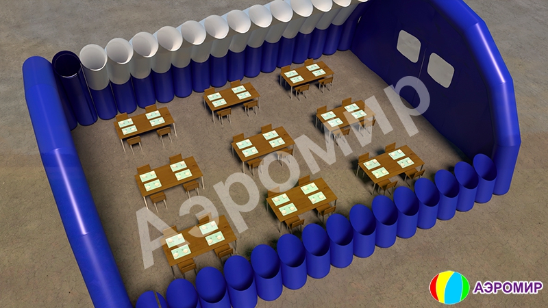 ВАЖНО! Форма ангара (палатки) поддерживается за счет постоянной подкачки вентилятором воздуха. Также при необходимости, возможно изготовление герметичных надувных конструкций небольших размеров.