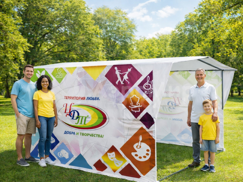 Палатка на металлокаркасе 2,7 х 2,7 — компактная и надёжная уличная конструкция для торговли, приёма посетителей и проведения промо-акций на праздниках и мероприятиях. Позволяет быстро развернуть полноценную рабочую точку без сложного монтажа.