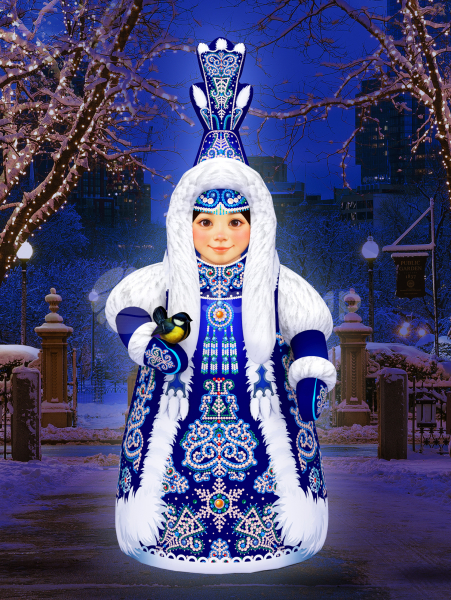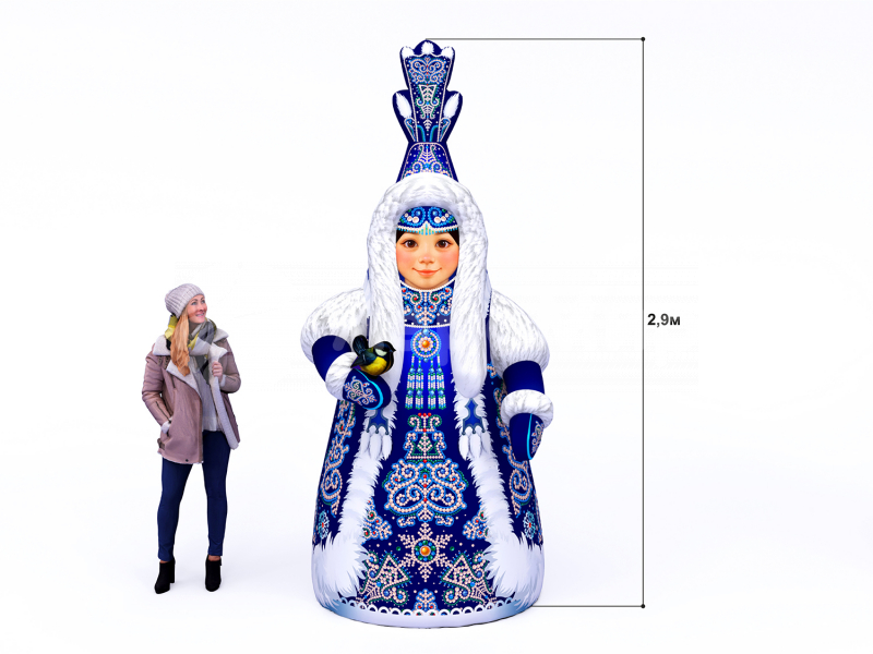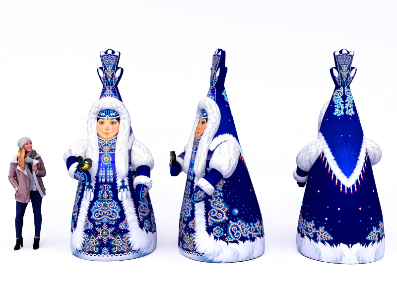 Надувная якутская Снегурочка Хаарчаана выделяется яркой этнической печатью, встроенной подсветкой, прочным материалом Oxford, устойчивостью к морозу, быстрой установкой, возможностью использования внутри и на улице, брендированием по запросу и гарантией 1 год.