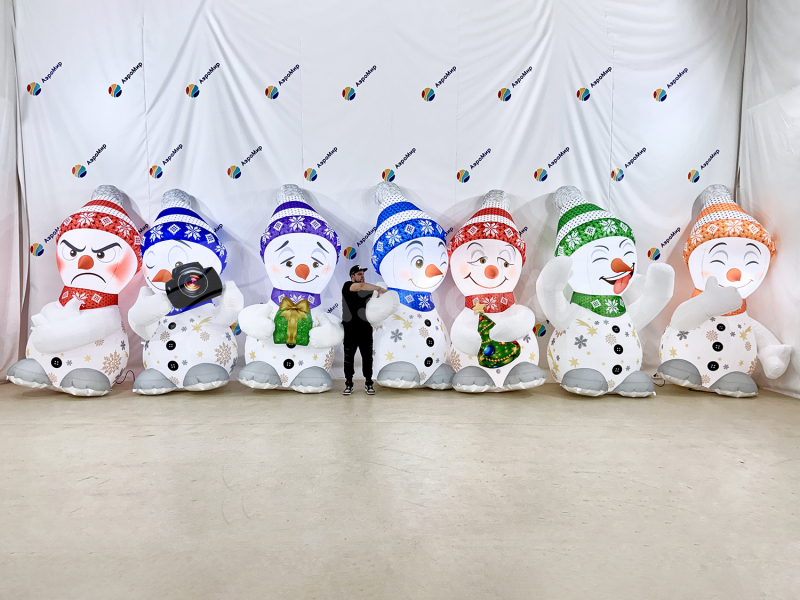Фото реализованных новогодних надувных фигур: Дед Мороз, Снегурочка, Елки, Снеговики, праздничные фотозоны